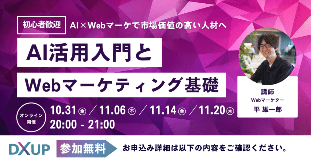 本セミナーでは、未経験の方にもわかりやすくWebマーケの基礎とAI活用術を解説します。